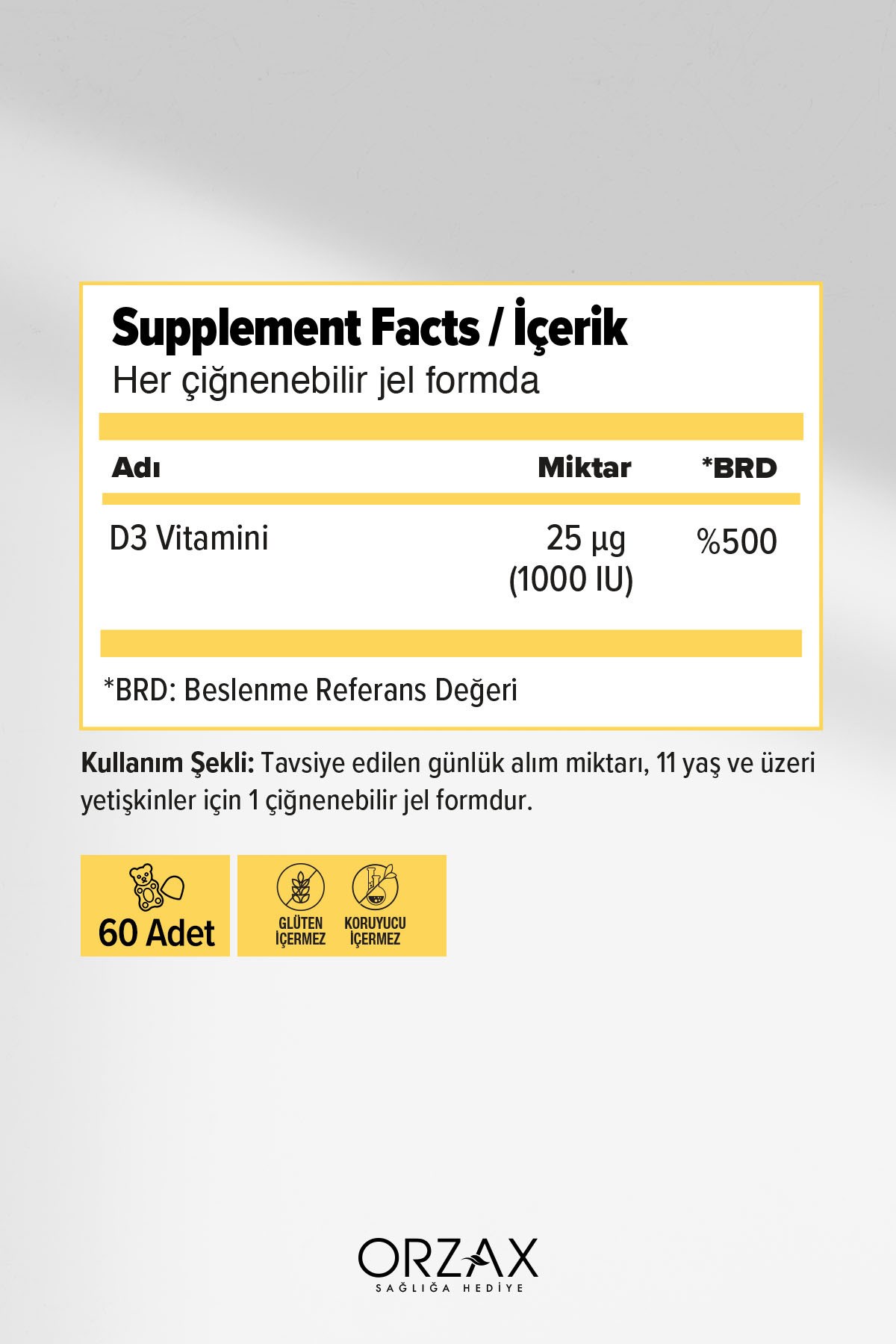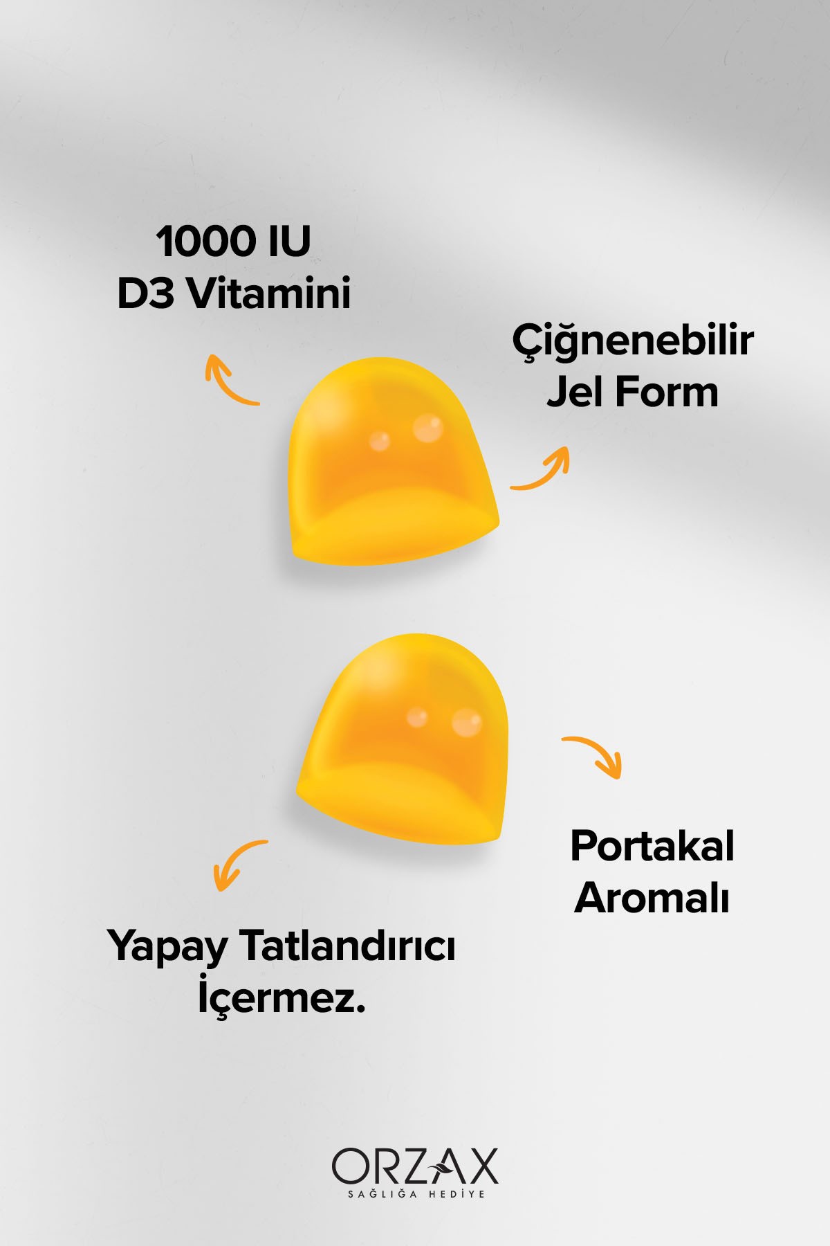 Ocean Gummies Vitamin D3 1000IU 60 Çiğnenebilir Portakallı Jel Form